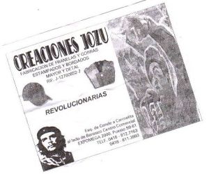 Tout autour, les gens, gagnés par la cause, sont aussi de rouge vêtus. Ils n’hésitent cependant pas à renouveler leur garde-robe. Ils achètent. Il faut admettre que la créativité du designer est infinie, même si l’esthétique est le plus souvent brouillonne. On combine Chávez avec le Che, Bolívar avec Chávez, le Che avec Chávez ET Bolívar… Ajoutez-y un soupçon de Marx, une dose de Lénine, parfois même une goutte de Engels… De quoi se remémorer ses classiques (à défaut de les lire).