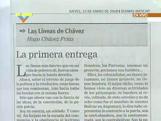Les premières « Lineas de Chávez » (22 janvier 2009) Publié 27 juillet 2009 à 320 × 240 dans Le blog de Chávez ← Précédent