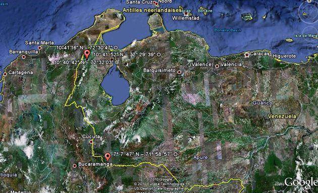 La frontière Colombie-Venezuela Publié 31 juillet 2010 à 630 × 383 dans À la recherche des camps rebelles ← Précédent La frontière entre la Colombie et le Venezuela et l’emplacement des camps rebelles, selon les coordonnées fournies par les autorités colombiennes