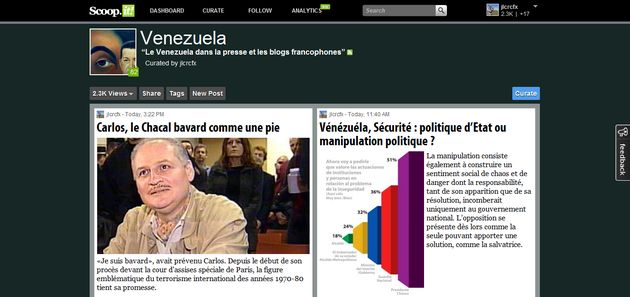 Scoop.it Venezuela Publié 12 novembre 2011 à 630 × 297 dans Soyez surinformés sur le Venezuela ! Suivant → Le Venezuela sur Scoop.It