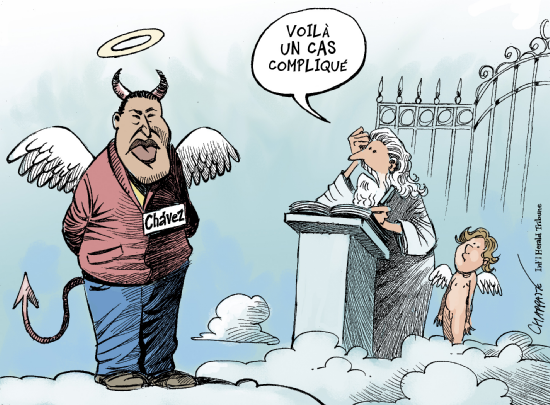 Chavez par Chappatte Publié 23 mars 2013 à 550 × 405 dans Hugo Chávez : une rue à Paris, une montagne dans le Caucase ? Suivant → Chavez par Patrick Chappatte