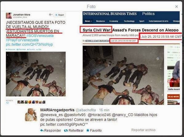 Manipulation médiatique Publié 28 février 2014 à 598 × 446 dans Au cœur de la guerre médiatique ← Précédent Suivant → Les morts du conflit syrien sont transférés au Venezuela